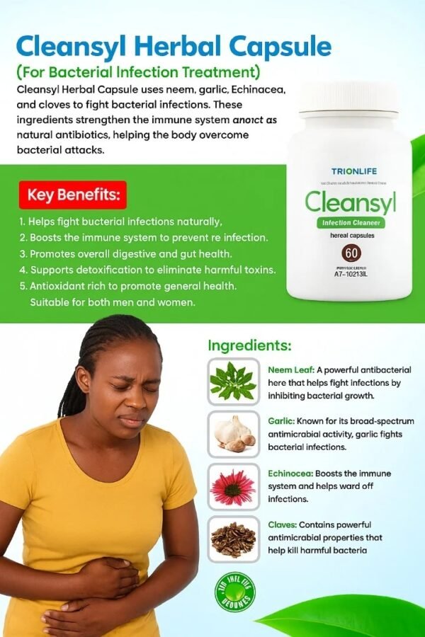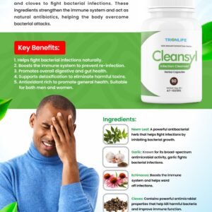 Cleansyl™ is a carefully formulated 100% herbal blend designed to attack infections at the root, restore balance, and strengthen immunity so they don’t come back.